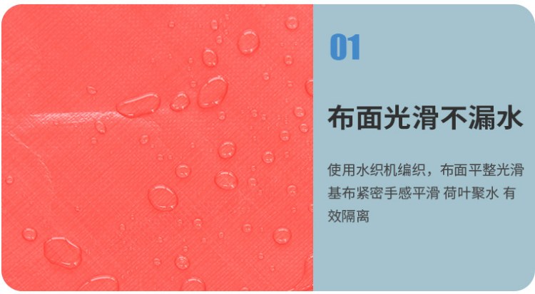 大紅色PE防水篷布布面光滑不漏水:使用水織機編織,布面平整光滑,基布緊密手感平滑,荷葉聚水,有效隔離。